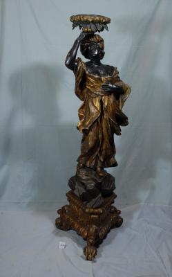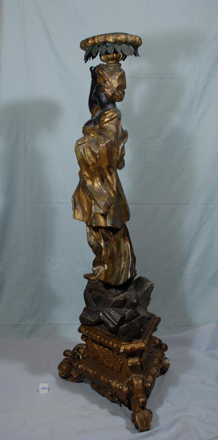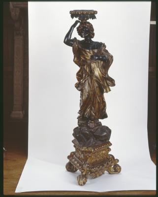 На брилі каміння, вміщеного на трикутній різьбленій підставці, стоїть молода арапка в довгому, сильно декольтованому одязі. Правою рукою вона підтримує на голові підставку у вигляді круглої пласкої вази на ніжці. Лівою рукою вона торкається грудей. Підставка та одяг позолочені.